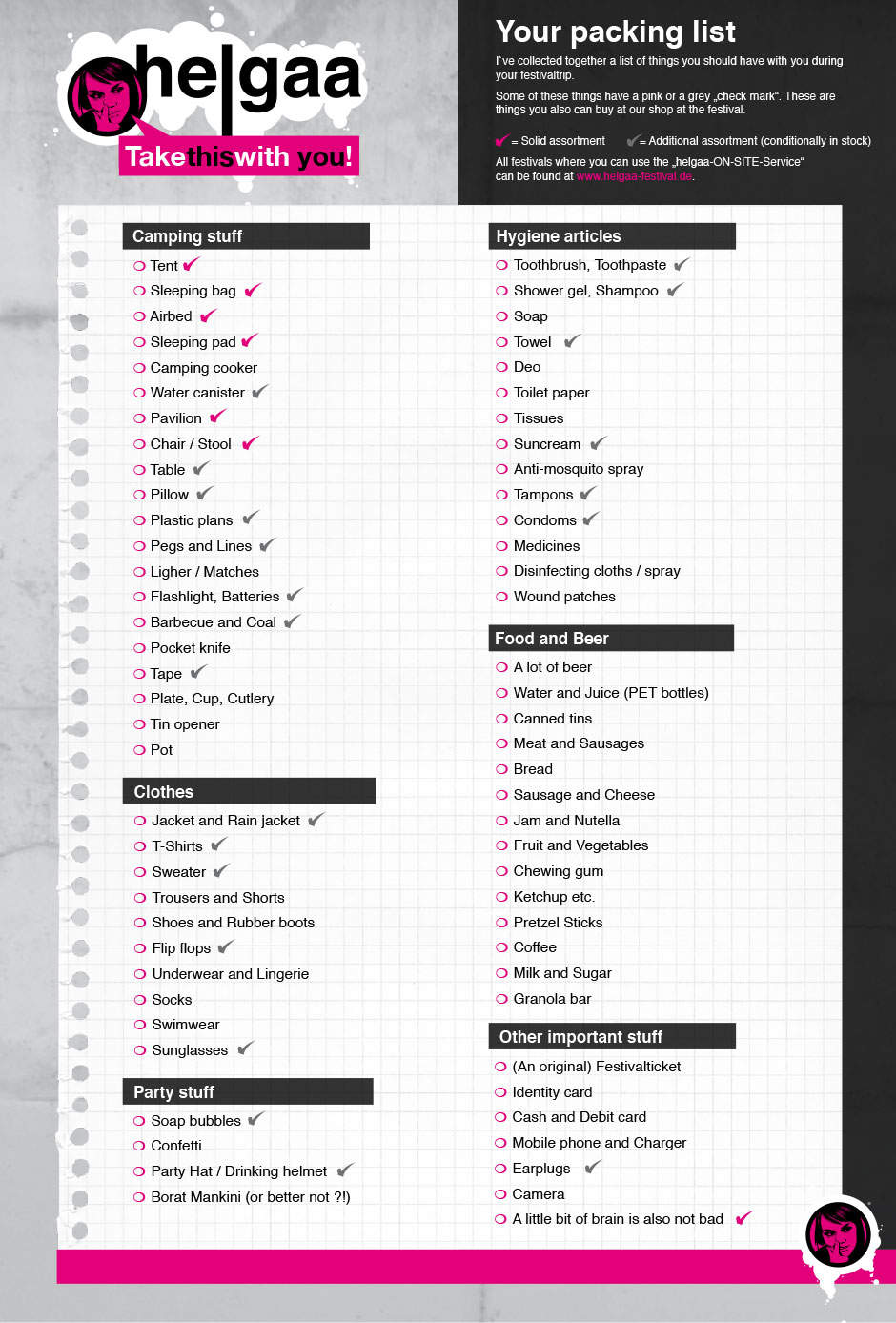 Here I have collected together a list of things you should have with you during your festivaltrip. If you have forgotten something ... then come over us.